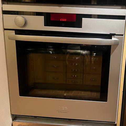 Electrolux inbyggnadsugn med grillfunktion. Ugn i rostfritt utförande med frontlucka i glas och vredreglage på ovansidan. Invändigt finns flera inskjutningsnivåer för plåtar och galler. Ugnstypen är grill, vilket gör den lämplig för tillagning och gratinering av olika rätter. Passar för inbyggnad i köksskåp enligt standardmått för inbyggnadsugnar, 60 x 60 cm. Fläckar från matlagning i ugnsutrymmet. Missfärgat glas i luckan. Gummikpackning för värmeisolering lös.