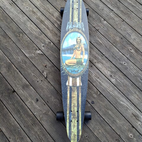 Set med tre brädor bestående av en longboard, en mindre plastcruiser och en skateboard. Longboarden har längre form med röd hjulsättning. Den mindre cruisern är i plast med grön ovansida och färgade hjul. Skateboarden har dubbelsidig kicktail och tryckt motiv på undersidan. Passar för åkning på plana underlag och enklare trick beroende på brädtyp.