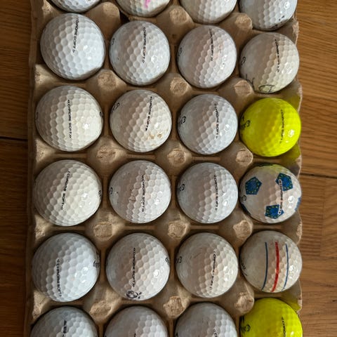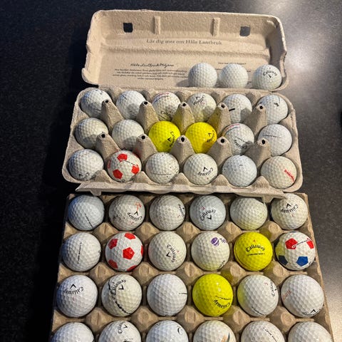 24 st Callaway supersoft i bra skick. Bollarna har olika tryck och olika linjeringar. Bollarna säljs för 5 kr styck.