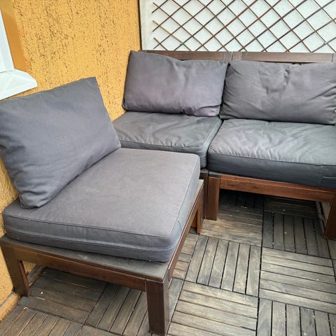 Unopiu: Modulsoffa utomhus tvåsits svart med vita dynor