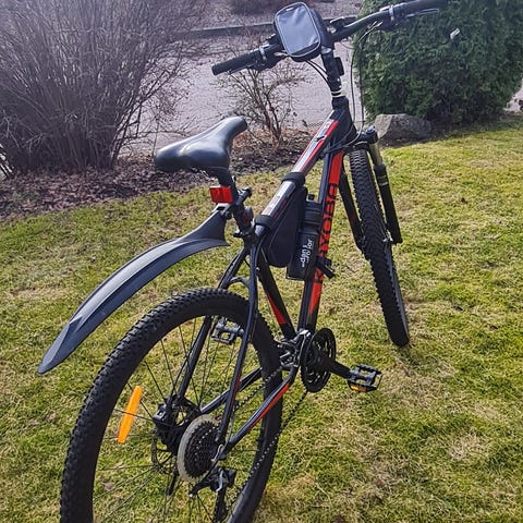 Cykeln fungerar perfekt och har inga problem. Utrustad med pakethållare och stöd, vilket gör den praktisk både för pendling och fritid.