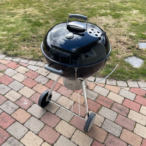 Weber kolgrill med runt grillgaller och inbyggt sidobord. Helt nytt galler som aldrig är använt.