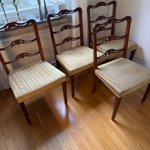 Äldre trästolar med läder sits 4 stycken