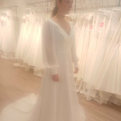 Den här klänningen har använts, men den är kemtvättad, så du kan använda den direkt. Storlek S eller XS är perfekt.