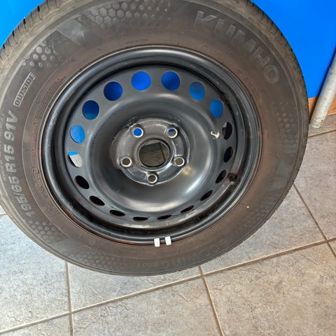 Däcken är i gott skick med 4-4,5mm kvar ner till slitklacken.