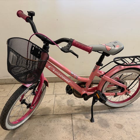 Crescent svava barncykel med 16" hjul. Cykeln har ram i rosa med blåa skärmar och detaljer. Utrustad med korg fram, pakethållare bak, stöd, reflexer och fotbroms. Passar barn som behöver en mindre cykel med 16-tums hjulstorlek för vardagscykling och kortare turer.
