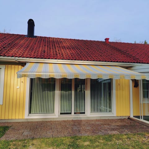 Stor och stabil terrassmarkis säljes. Perfekt för större altan där man vill ha ordentlig skugga direkt.
