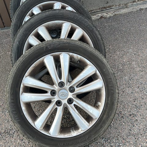 Säljer en uppsättning sommardäck på Peugeots original fälg, skrap är redan fixat.