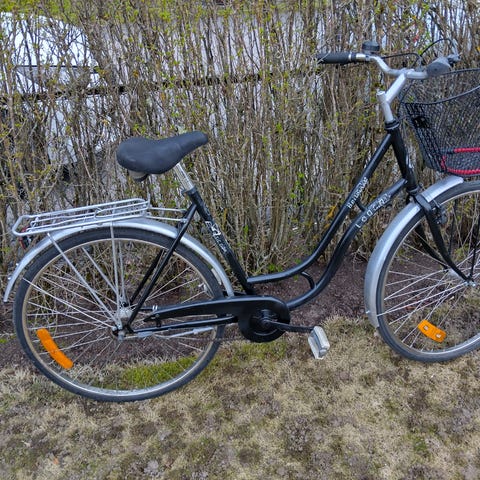Monarks klassiska damcykel Karin i en variant med mindre ram och hjul. Nypris 7 995 kr. Mycket fint skick förvarad i garage och sparsamt använd.