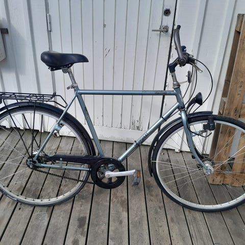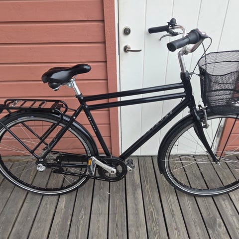 CBS Nishiki stadscykel för unisex med ramstorlek 57 cm och 28"/700c-hjul. Cykeln har upprätt körställning, pakethållare bak, stänkskärmar och fotbroms. Passar för vardagscykling i stadsmiljö och pendling på asfalterade vägar. Sadel och styre är justerbara för att anpassa sittställningen efter förarens längd.