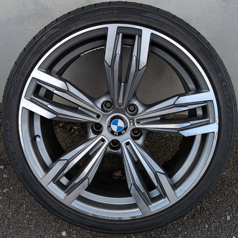 Endas lite lite kantskrap på en fälg, se bild. Men däremot lite klarlacksläpp på emblem och runt centrum. Se bild