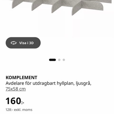 1 st IKEA komplement utdragbart hyllplan 75x58 (nypris 320kr) pris 200 kr.