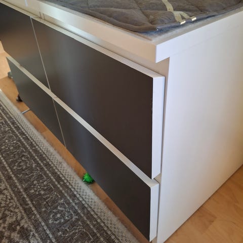 Malm säng, sängbord och byrå