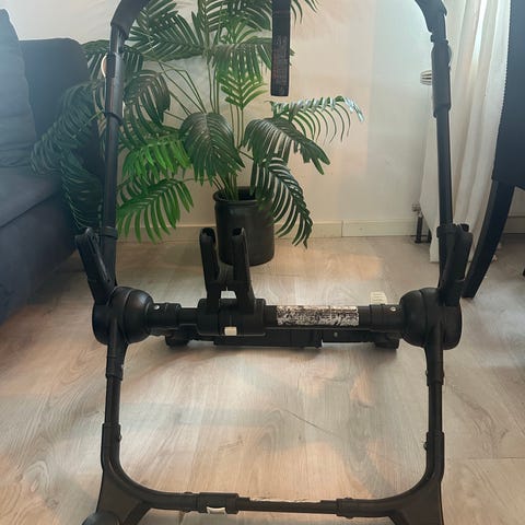 Bugaboo barnvagnschassi i svart utförande. Chassit har fyra hjul med svängbara framhjul och justerbart handtag. Passar för montering av sittdel och/eller liggdel. Lämpligt som reservdel eller utbyte till befintlig vagn där övriga delar redan finns.