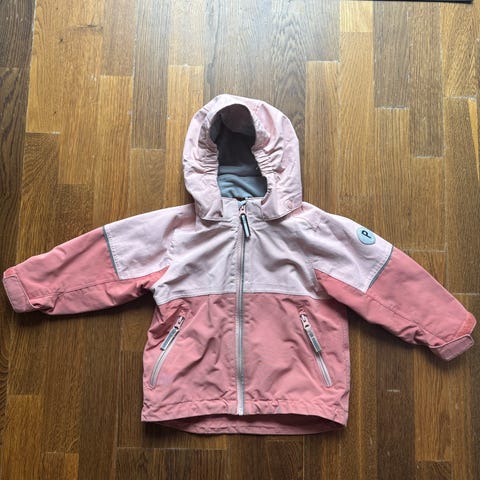 Mörkblå skaljacka i storlek 92 från Polarn O. Pyret. Mycket fint begagnat skick, ett mindre slitage hål (högst 1 mm) på varje armslut (se bild).