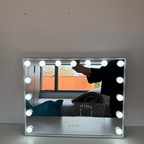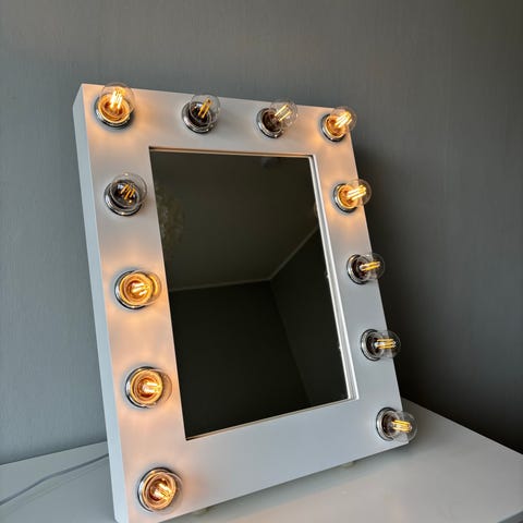 Går att ha ståendes på sminkbord men går även att hänga upp på vägg.