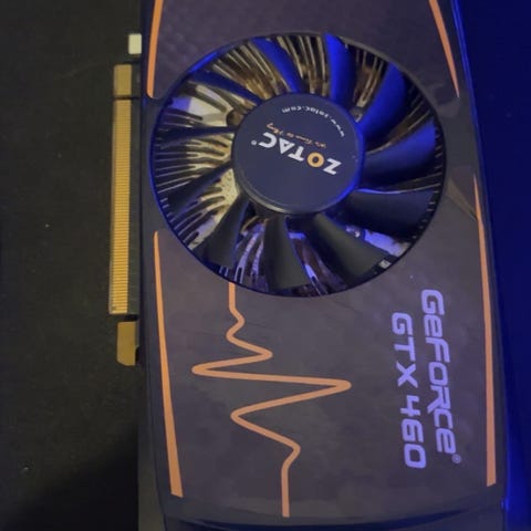 Zotac GTX460 grafikkort med 1 GB DDR5-minne och 256-bit minnesbuss. Kortet har kylare med fläkt på ovansidan. Anslutningar inkluderar dubbla DVI-portar samt ytterligare Hdmi utgång (enligt bild). Passar stationär dator med kompatibel PCI Express-plats och nätaggregat som klarar kortets strömkrav.