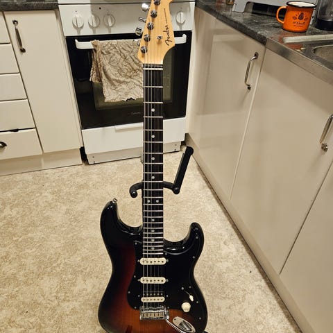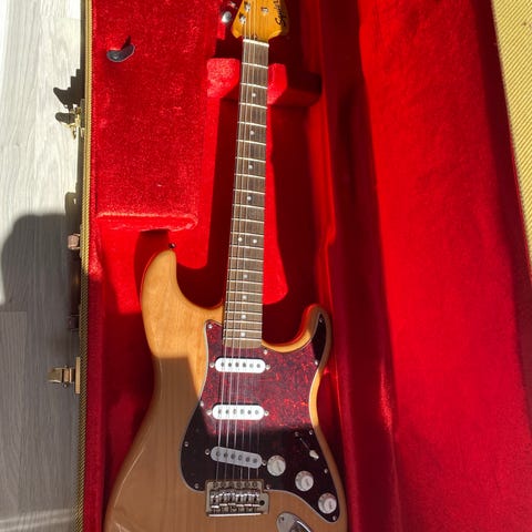 Fender Stratocaster Select HHS elgitarr med kropp i lönn- träfinish och vit plektrumskydd. Gitarren har tre singlecoil-mickar, volym- och tonkontroller samt 5-lägesswitch. Utrustad med tremolosystem och kromad hårdvara. Hals med lönnliknande träslag och greppbräda med bandmarkeringar. Passar för elgitarrspel inom flera musikstilar där en klassisk Stratocaster-konstruktion önskas. USA producerad 2012-06-27. Original Hard-case ingår. Hals 9.5"-14".