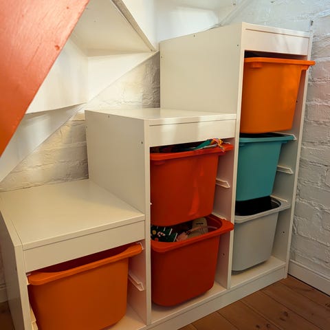 Barn behöver bra och rymlig förvaring till sina saker. I serien TROFAST finns trästommar, meshbackar samt backar och brickor av plast (min. 50% återvunnen). Enkla att dra ut, bära och sätta tillbaka igen.