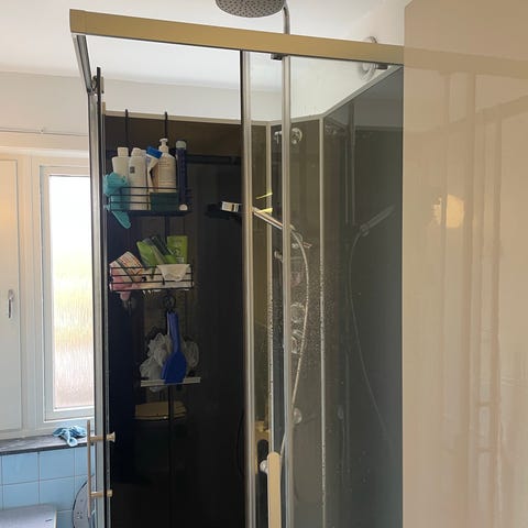 Granvik duschkabin med måtten 90x90x215 cm. Duschkabin i glas med hörnmodell och skjutdörrar. Kabinen har integrerad duschpanel med blandare och handdusch. Passar för installation i badrum där en fristående duschkabin önskas, med anslutning mot befintligt vatten- och avloppssystem enligt installationsanvisning i medföljande manual.