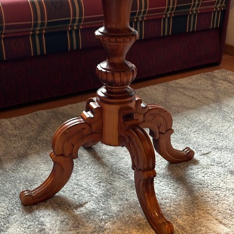 Snyggt soffbord med böjda ben som gör en otroligt snygg detalj. Fint trä som väger rätt mycket. Skulle kunna olja in bordet lite snabb om man vill få en liten uppfräschning. Säljer pga flytt.