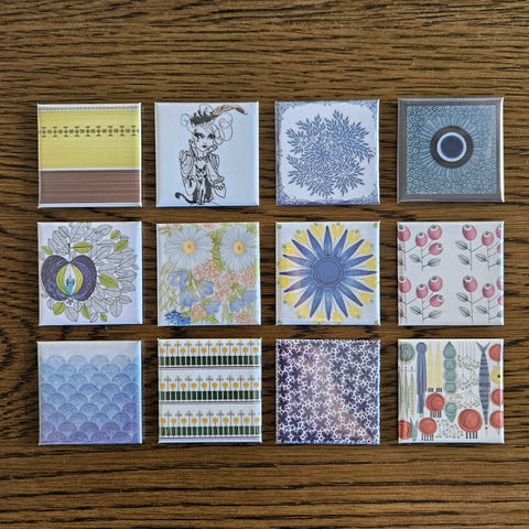 All magnets are designed and handmade by me. I use materials that are a mix of new and second hand. I aim to send orders within 24 hours.