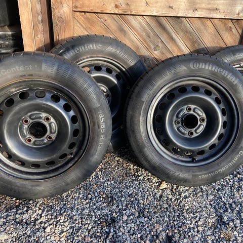 Bra däck på fälg. 6 mm mönsterdjup. Har suttit på en Peugeot 206. Passar också en del andra bilar, t.ex Citroen C-modellerna. Finns på Väddö, ca 3 mil norr om Norrtälje.