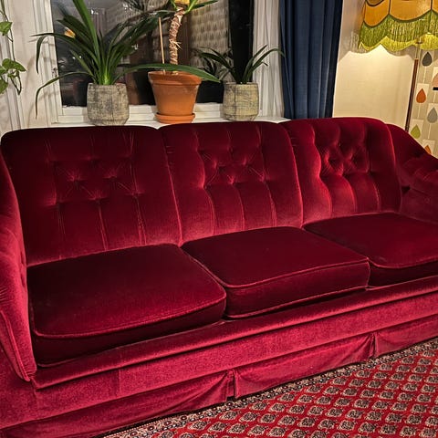 Orange chesterfield soffa i sammet