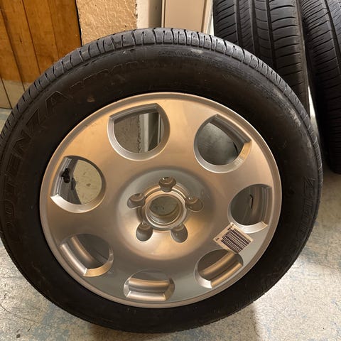 Däcken är begagnade med använt mönsterdjup men fungerar fortfarande bra för några säsonger till beroende på körning. Fälgarna är i fint bruksskick med normalt slitage.