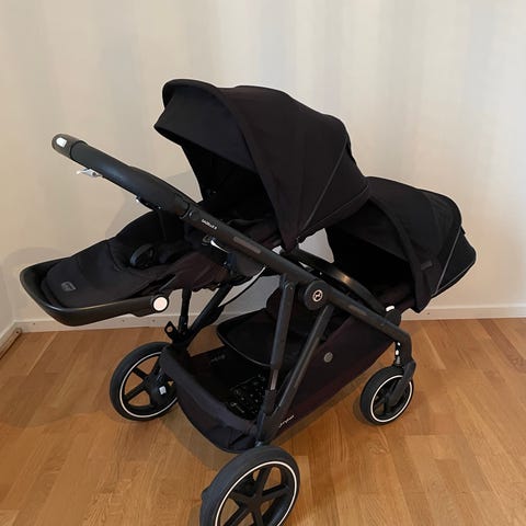 Sitt- och liggdelen är använd av ett barn klädseln är nytvättad och i bra skick utan skador.