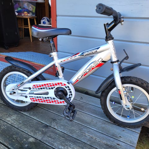 BITS barncykel 16'' med fotbroms och handbroms. Bra skick. Extra sadel medföljer.