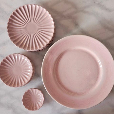 4 superfina tallrikar från Mateus 32cm rosa i modellen lace