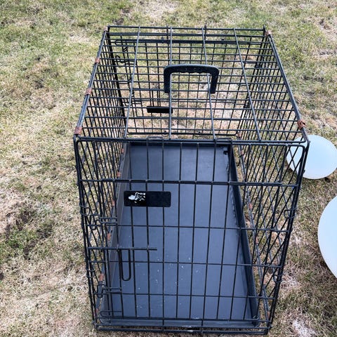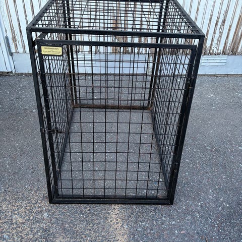 Hundbur Robust dubbel i metall med svart finish. Burens yttermått är cirka 105 cm djup, 87 cm bred och 70–75 cm hög. Framsidan har två dörrar med galler och lås. Utrymnings lucka bak. Buren är utformad med sned framkant som passar bra i bilens bagageutrymme. Botten har ett galler. Lämplig för transport eller som viloplats för en eller två hundar, beroende på storlek och behov.
