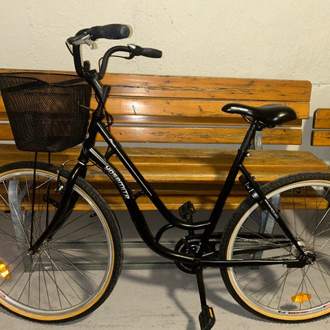 Cykelkorg, ett bra lås och ringklocka ingår.