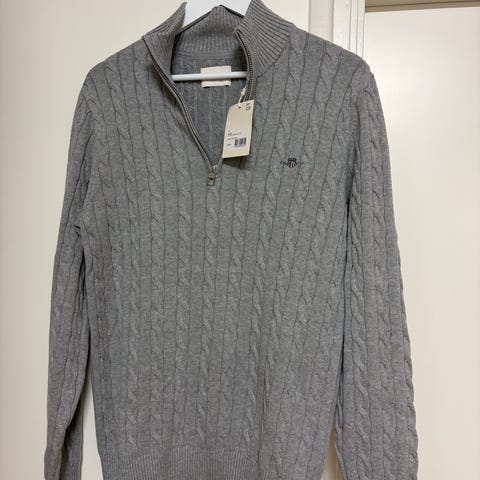 Ny Gant (Small Herr) Zip 100% lammull Herrtröja Stickad Lammullströja