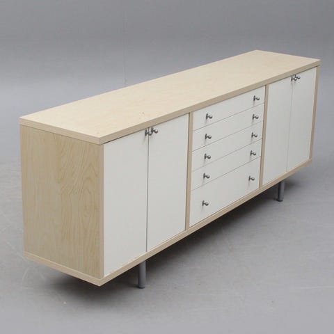 Sideboard i björk med glasdörrar.
