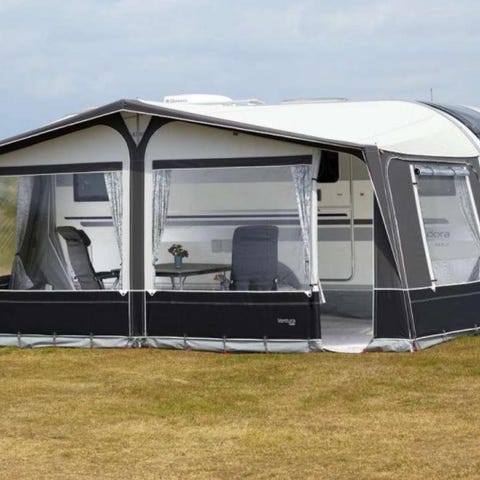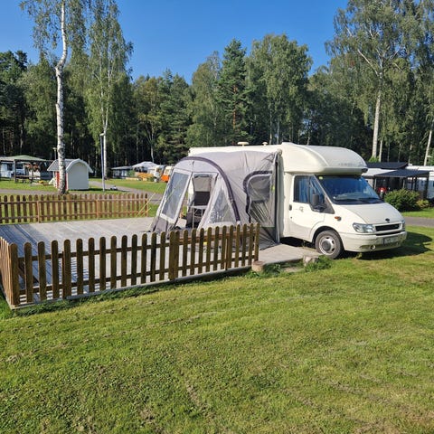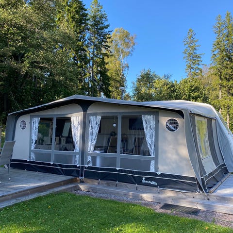 Bild på tält är lånad eftersom vi aldrig använder tältet som följde med vår husvagn.