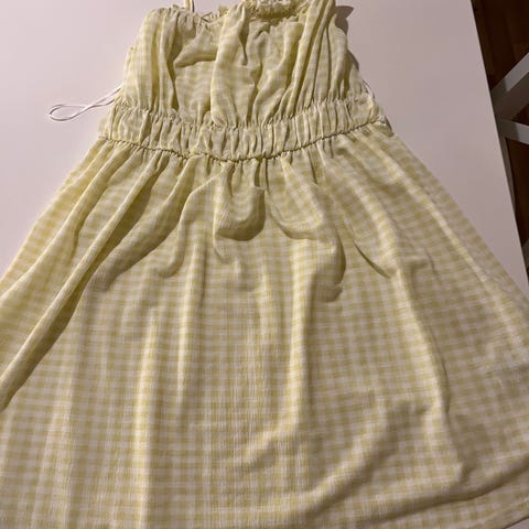 Lila/ vit sommarklänning. Dragkedja i sidan . Reglerbara axelband . Ej superkort utan går strax ovanför knän på mig som är 167 . Liten i storlek , står 42 men är mer som medium . Djur och rökfritt hem .