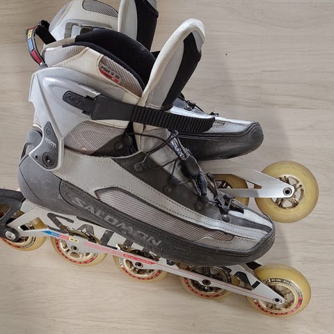 Säljer ett par SOC inlines (modell Aluminium Pro) i absolut nyskick. De är endast testade en kort sväng på ca 20 minuter och är därefter oanvända. Se bilderna för det fina skicket på hjul, skena och bromskloss.