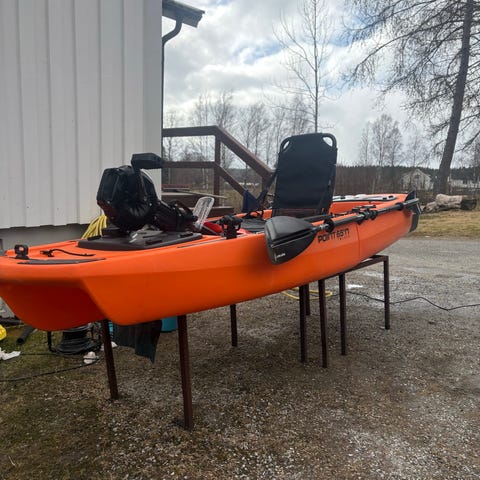 Lure 11,5 fiskekajak med ekolod i blågrå färg. Kajaken är en sit-on-top-modell anpassad för fiske, med stabil skrovform och flera utrustningsfästen. Utrustad med ekolod från Lowrance monterat framför sittplatsen. Kajaken har vadderad sits med ryggstöd, fotstöd, spöhållare, förvaringslucka i fören samt lastutrymme med spännband i aktern. Passar för fiske och fritidspaddling på sjöar och kustnära vatten.