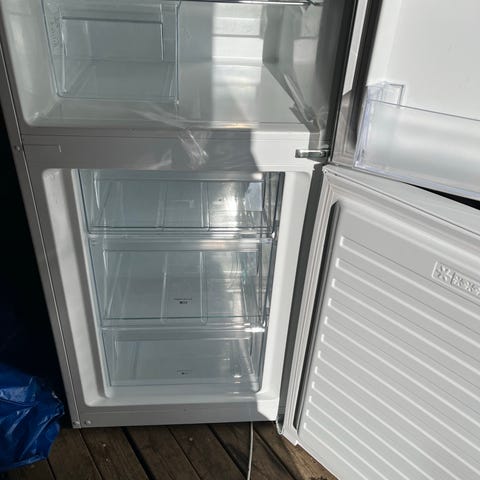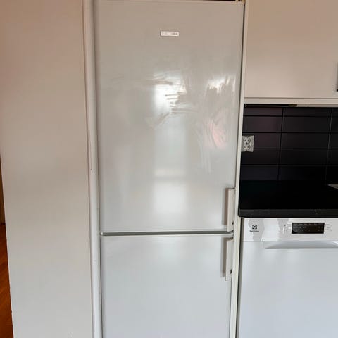 Bosch kombiskåp kyl och frys i vit färg. Kylskåpsdel med flera hyllplan, dörrhyllor och grönsakslåda samt separat frysfack nedtill.