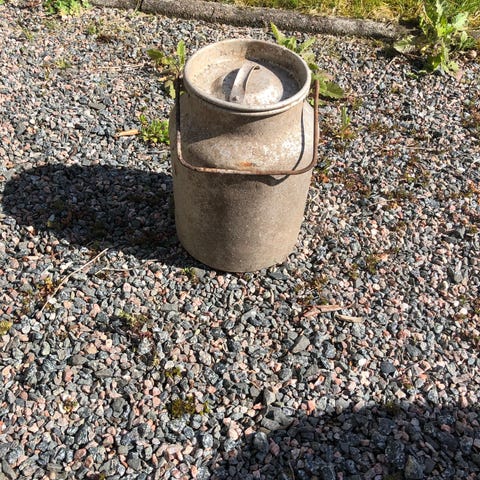 Dekorativ mjökkanna, rostig och har sin charm