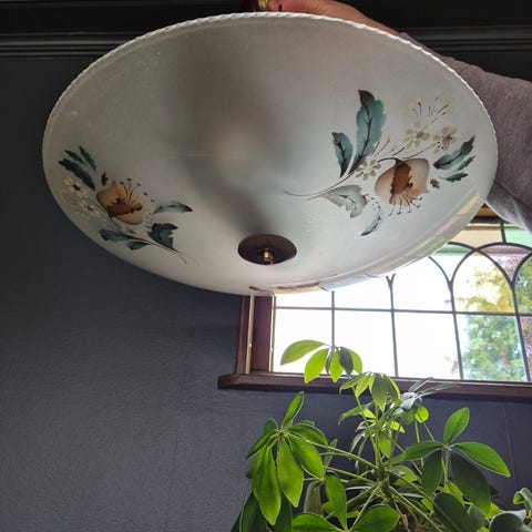 Sökord: tiffany lampa taklampa glas retro vintage antikt stained glass kupol skärm art deco art nouveau 1970-tal belysning inredning dekor lamp shade ceiling light.