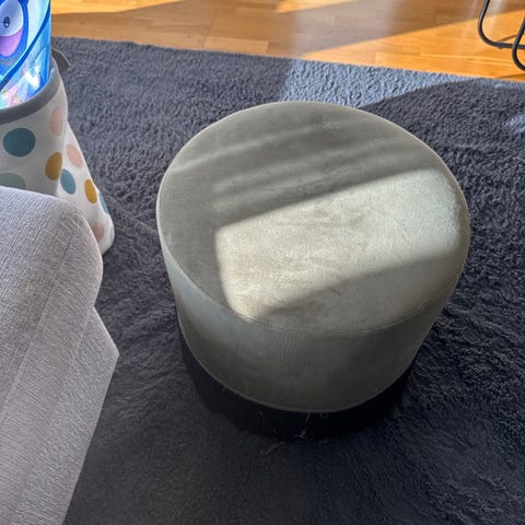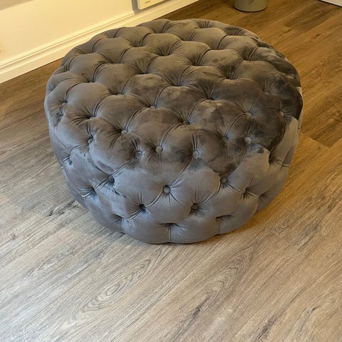 Säljer pga flytt en snygg grå puff från Mio.