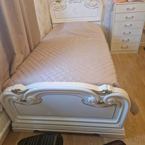 Säng vit med dekorativa detaljer