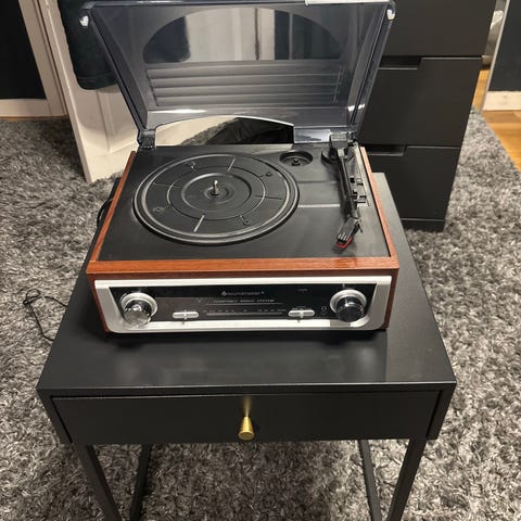 Ny Vinylspelare med bluethuthanslutning mot högtalare. USB laddning.