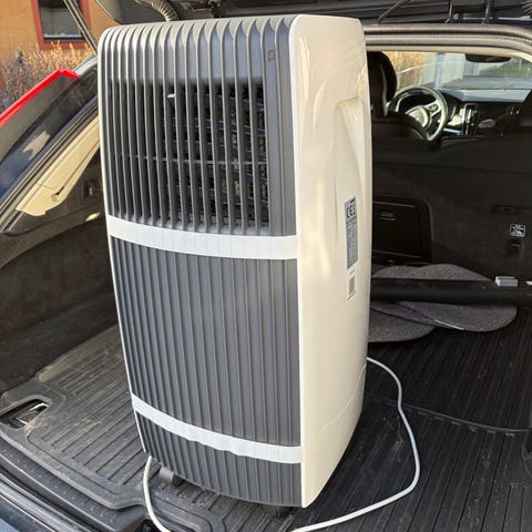 Innova portabel luftkonditionering i vit färg. Enheten står på golv och har hjul för enkel förflyttning. På ovansidan finns kontrollpanel med display och knappar för bland annat fläkthastighet, kyl-, avfuktnings- och fläktläge. På baksidan finns anslutning för medföljande frånluftsslang. I annonsen ingår även fjärrkontroll med funktioner som temperaturinställning, timer, sleep-läge, swing och olika fläkthastigheter, samt fönster-/vägganslutning till slangen. Produkten är avsedd för inomhusbruk för kylning och luftcirkulation i rum. Kyleffekt 35 Kw, Rumsstorlek upp till 28 kvm, Wifi. Inkl. bruksanvisning. Nypris idag 9000:- Hämtas i Linköping