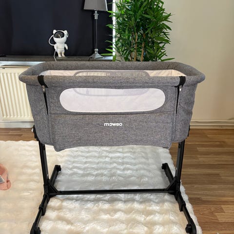 Moweo bedside crib spjälsäng grå