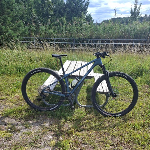 Cykeln inköpt köpt 2025 har rullat exakt noll (0) meter skog och därutöver endast provkörd på en gårdsplan. D v s hojen är till skicket ny.