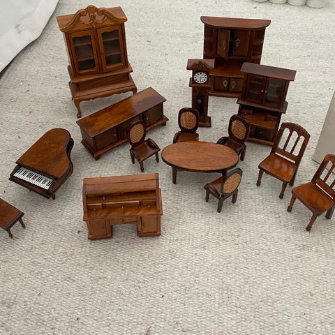 Lundby dockskåpsmöbler matsalsgrupp brun i trä